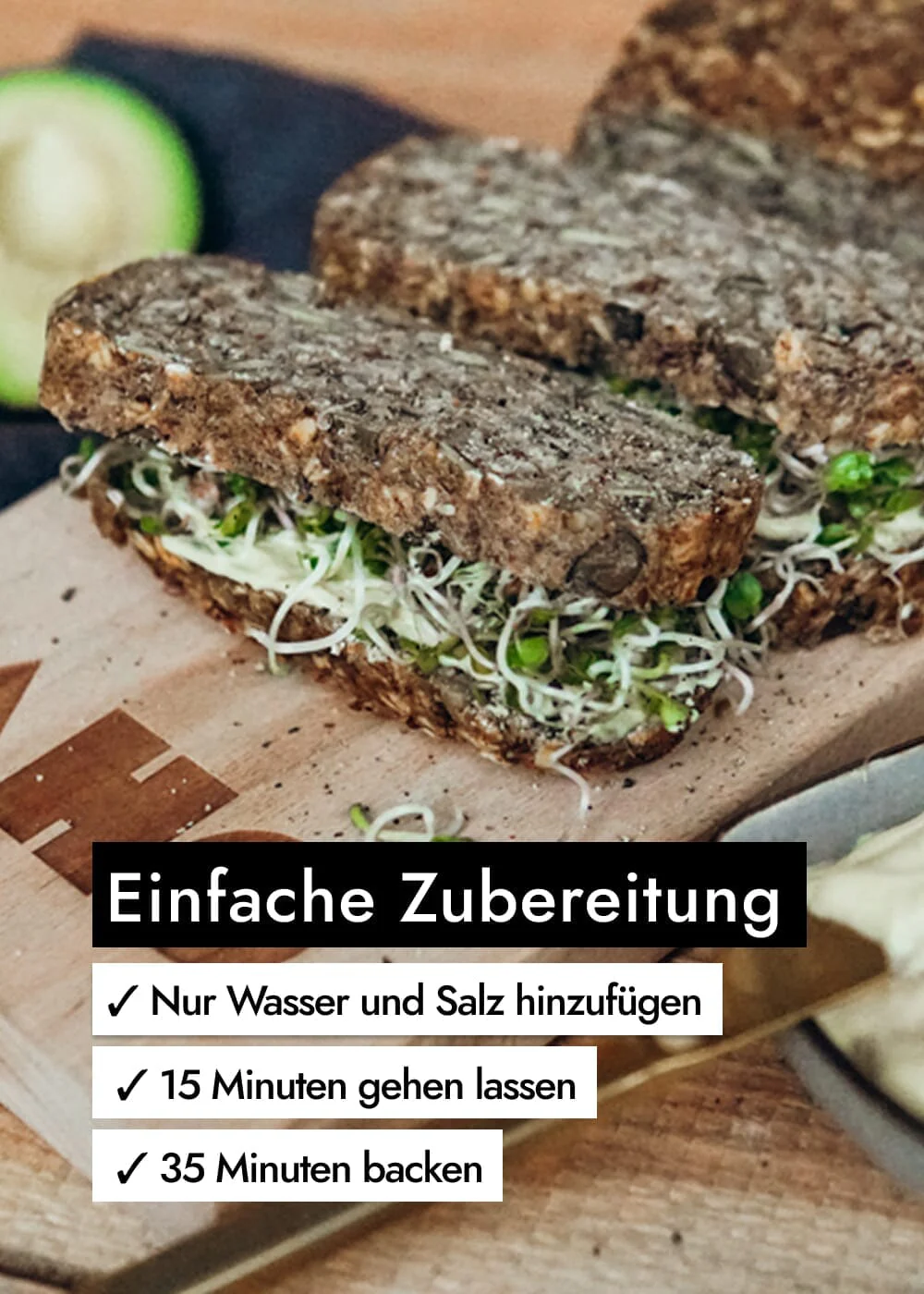 Hast du dir geschworen, dass du nie wieder Brot essen willst? Denkst du, Brot tut dir nicht gut? Tja, bis jetzt hast du ja auch noch nichts von unserem Sprossen Brot gehört. Es tut uns echt leid: Brich dein Versprechen und genieße wieder Brot. Die 100% gekeimte Sprossen Brot Fertigmischung ergibt ca. 980 g basisches, nährstoffreiches Power-Brot. Das wirst du nicht bereuen!